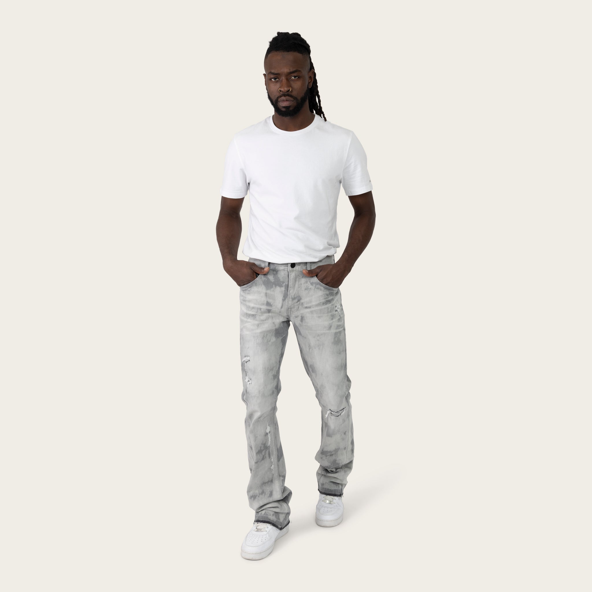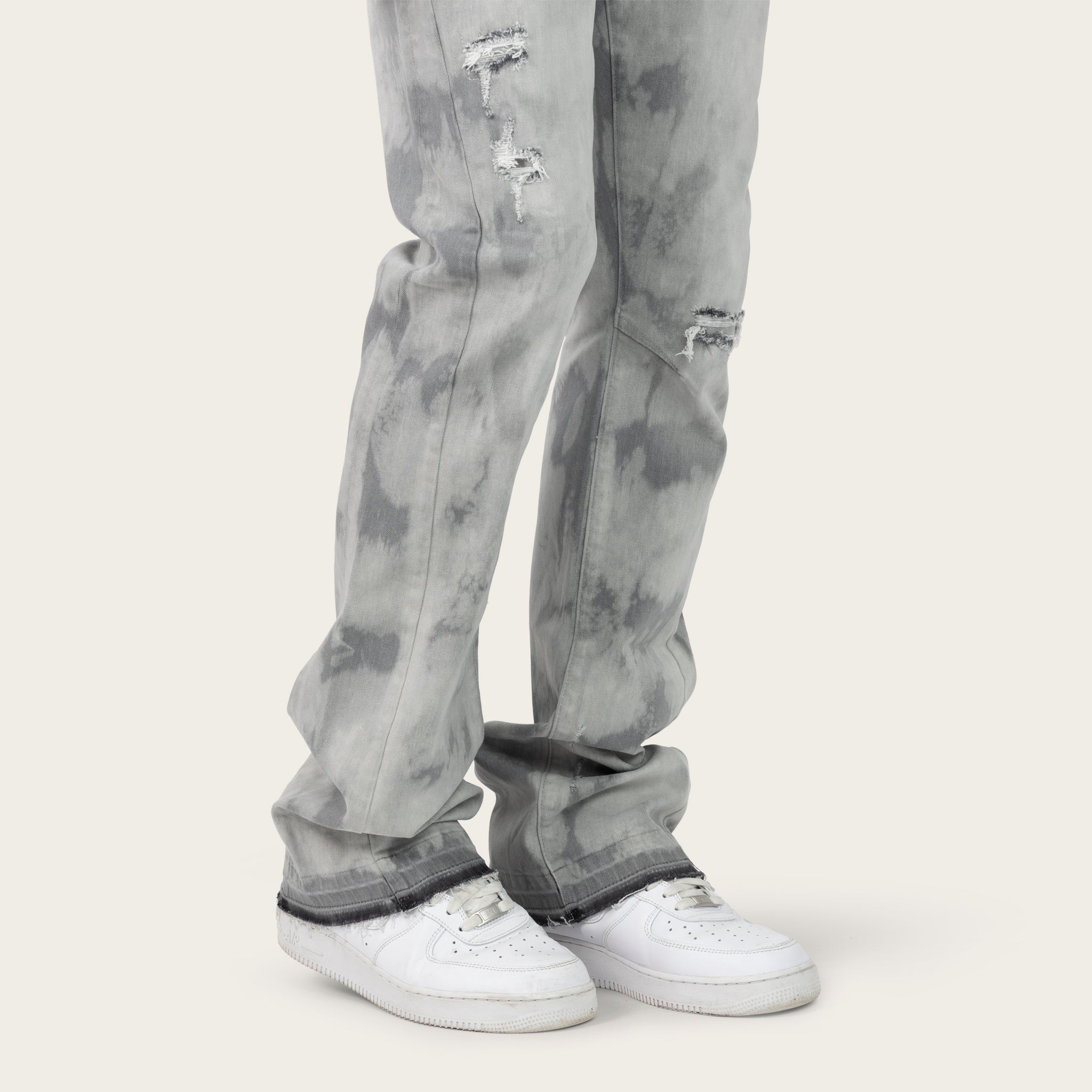 Lazy Stacked Sunbleached Effect Washed Jeans - Union Grey