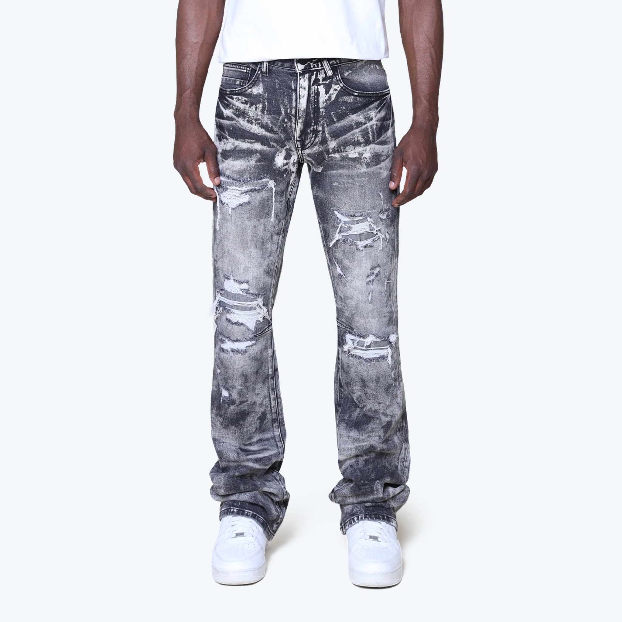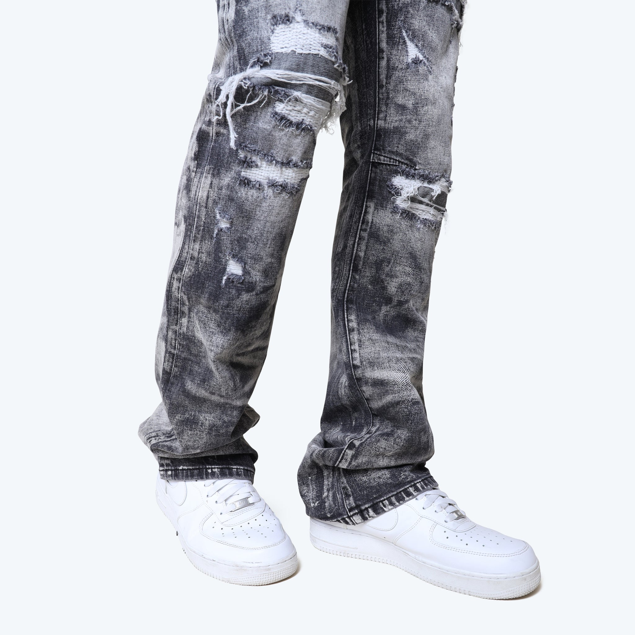 Lazy Stacked Heavy Laser Effect Jeans - Titan Grey