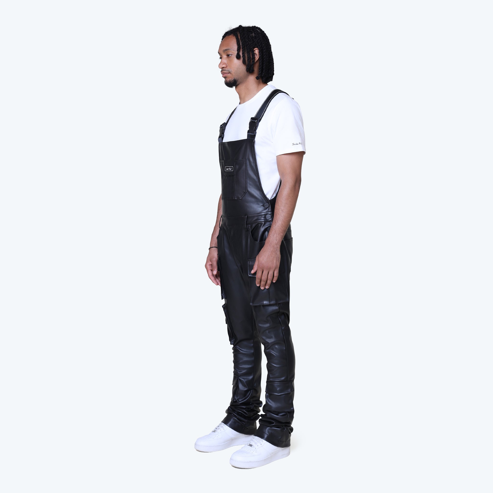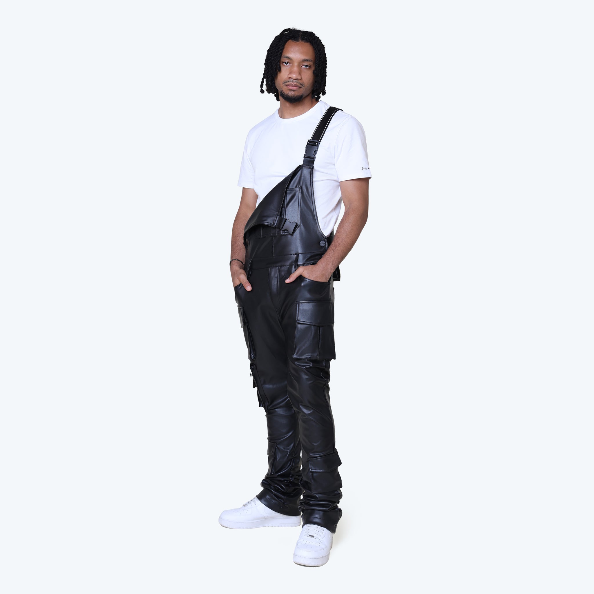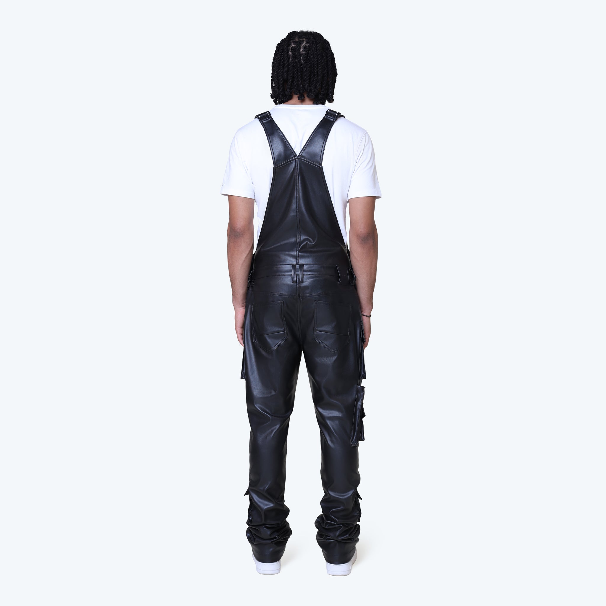 Stacked Vegan Leather Cargo Pants - Black