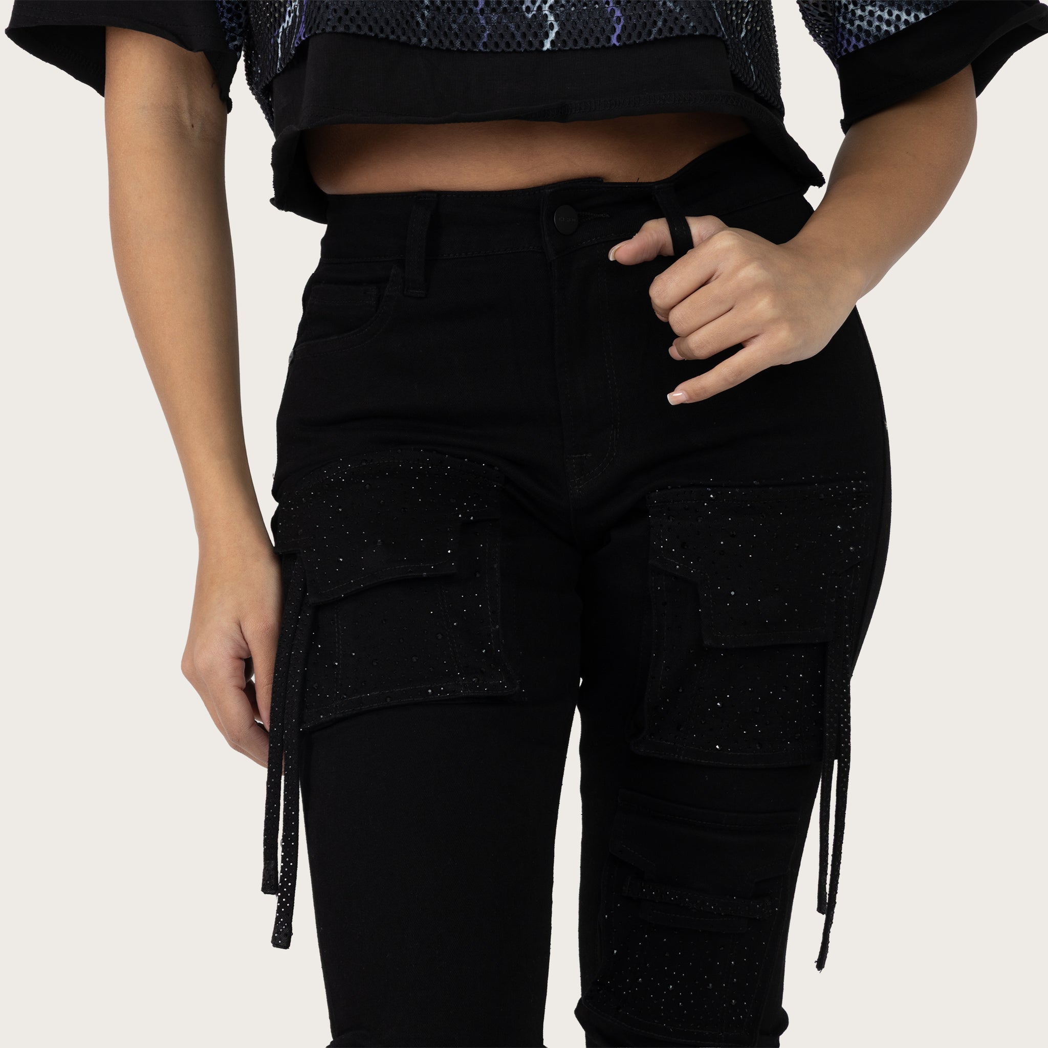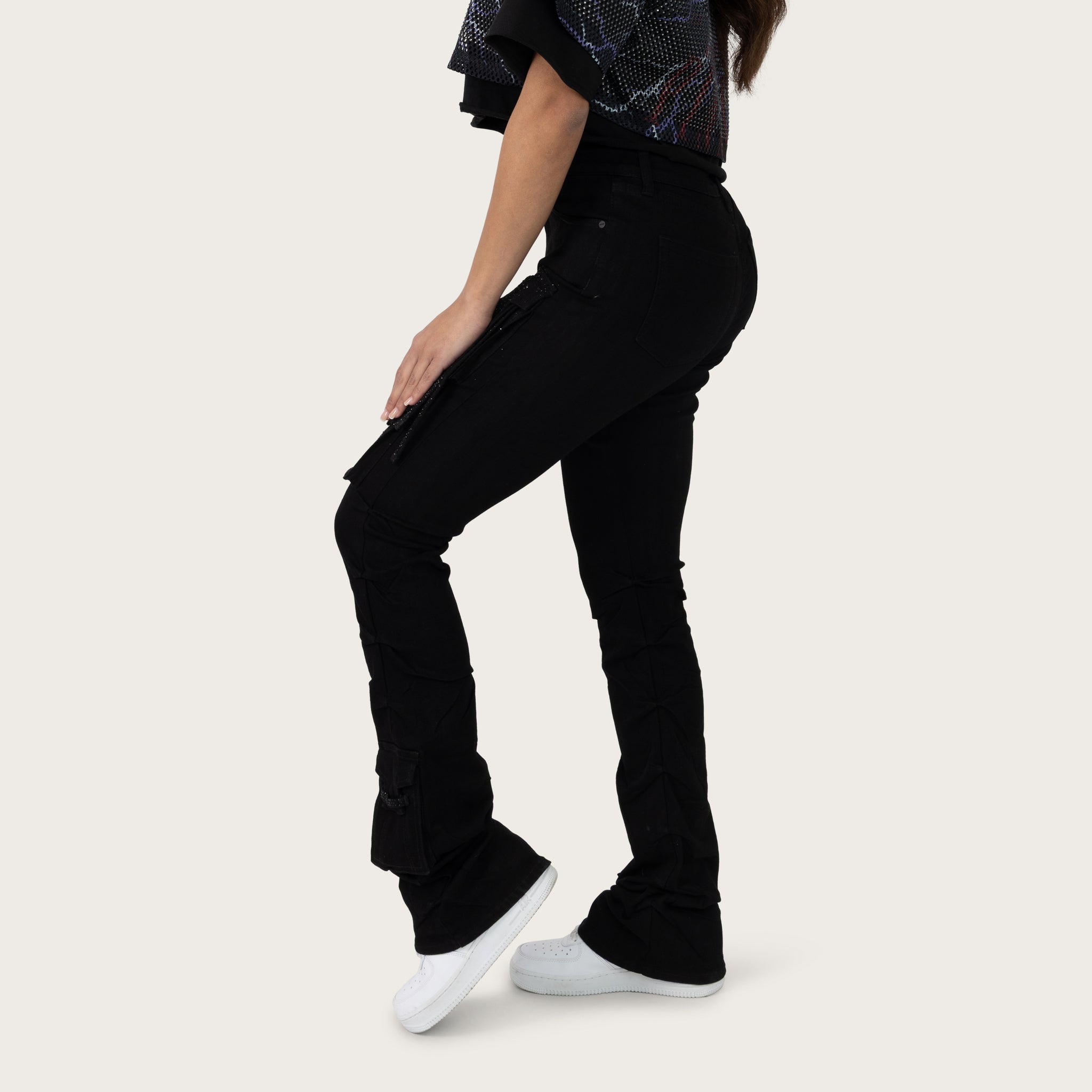 High Rise Stacked Pinched Jeans - Deep Black