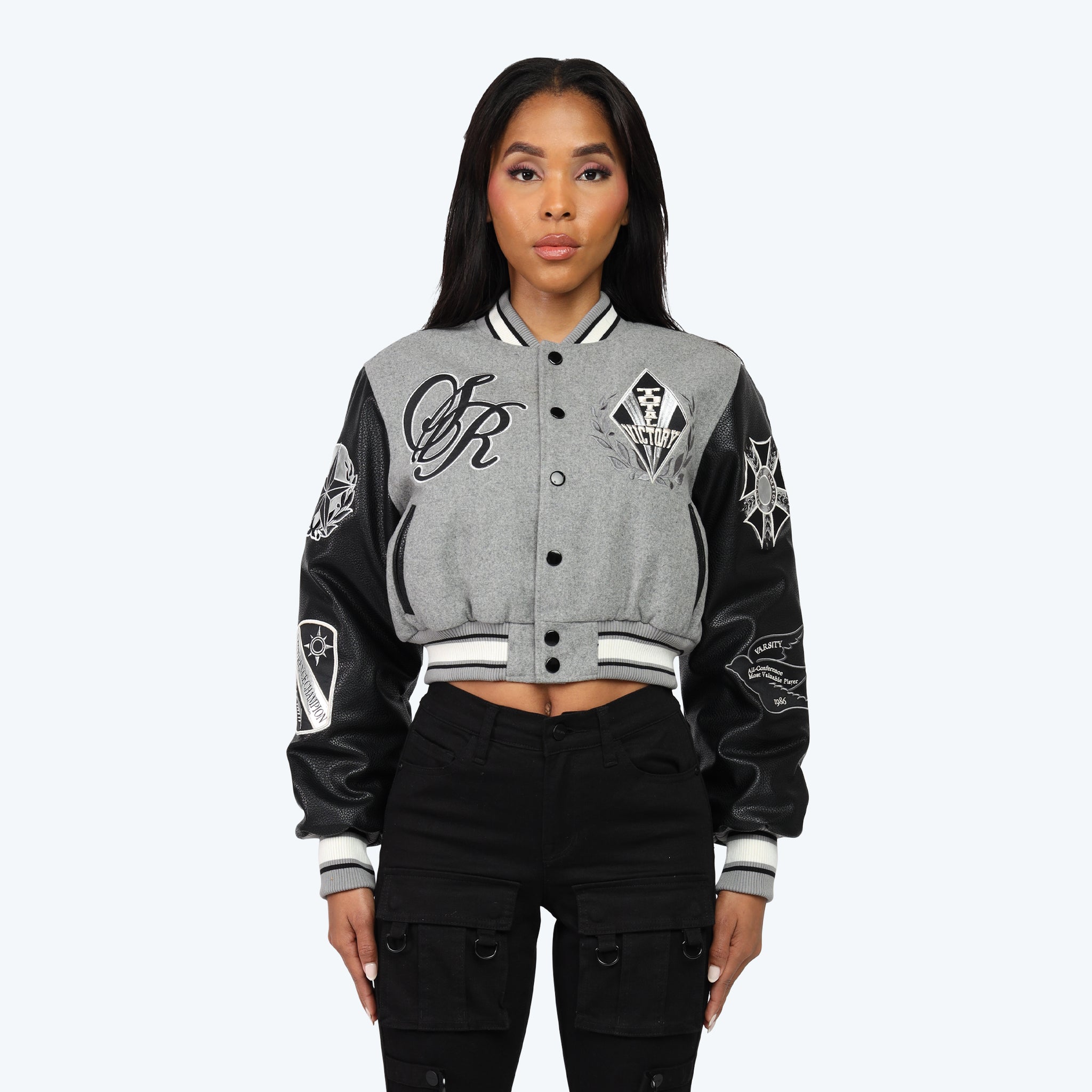 Varsity Cropped Fit Jacket - Heather Grey