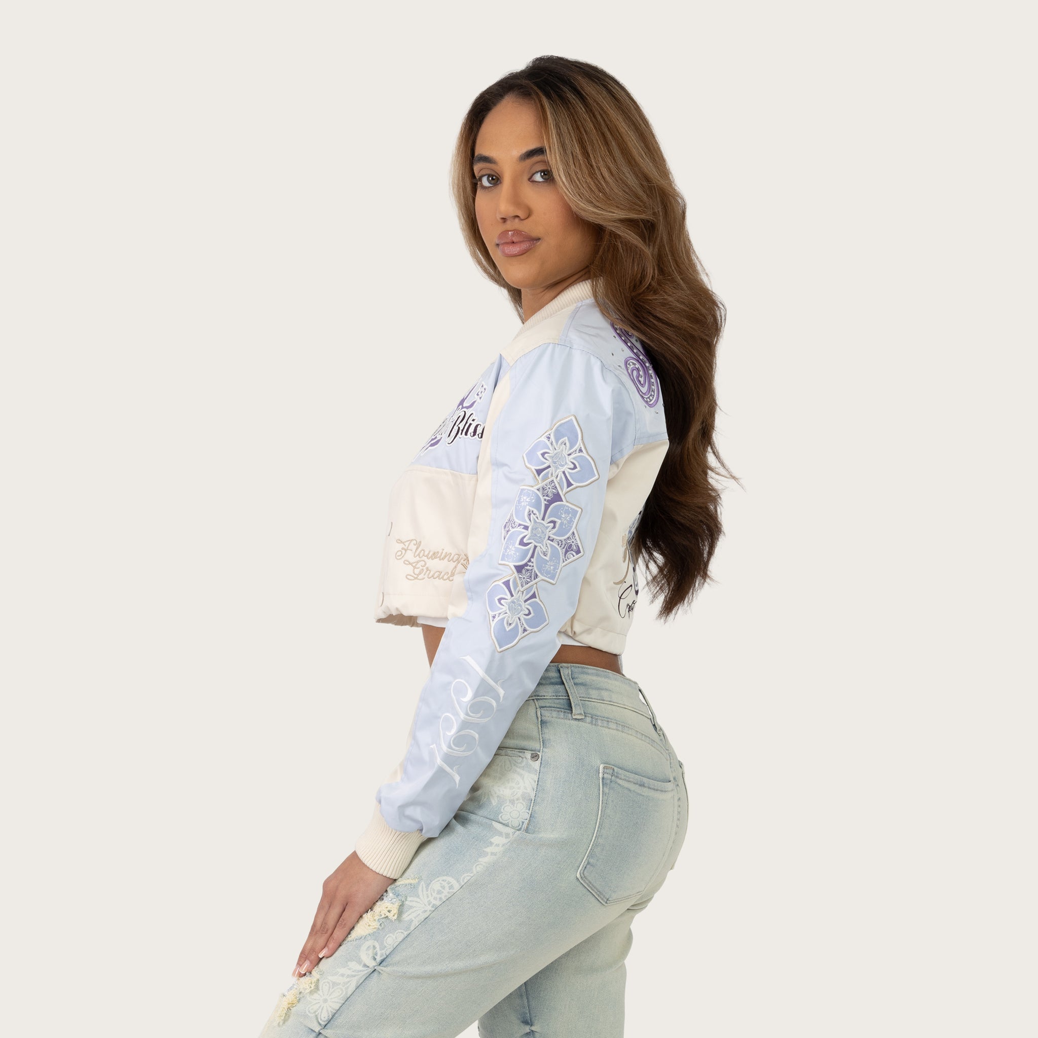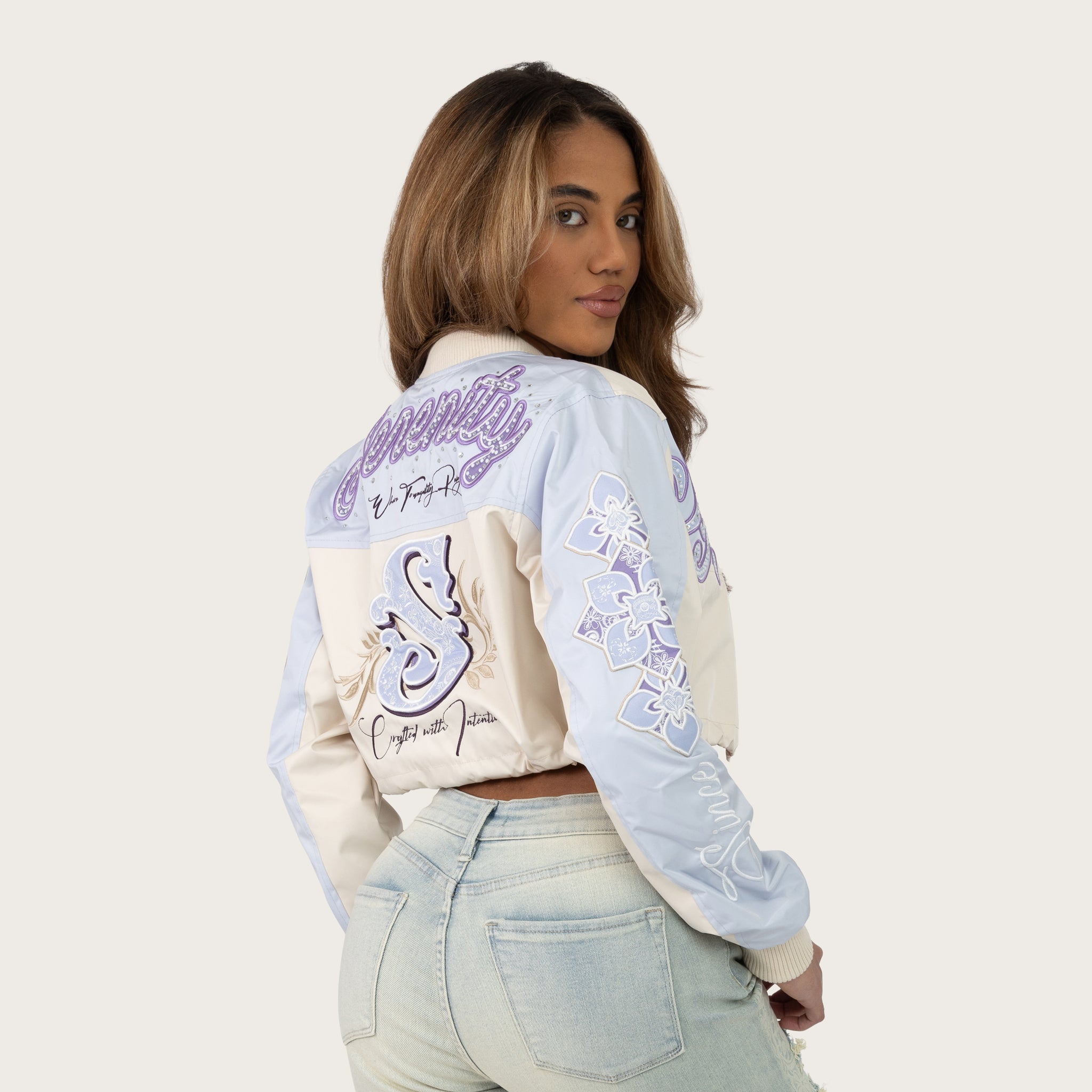 Short Patched Windbreaker Jacket - Oatmeal