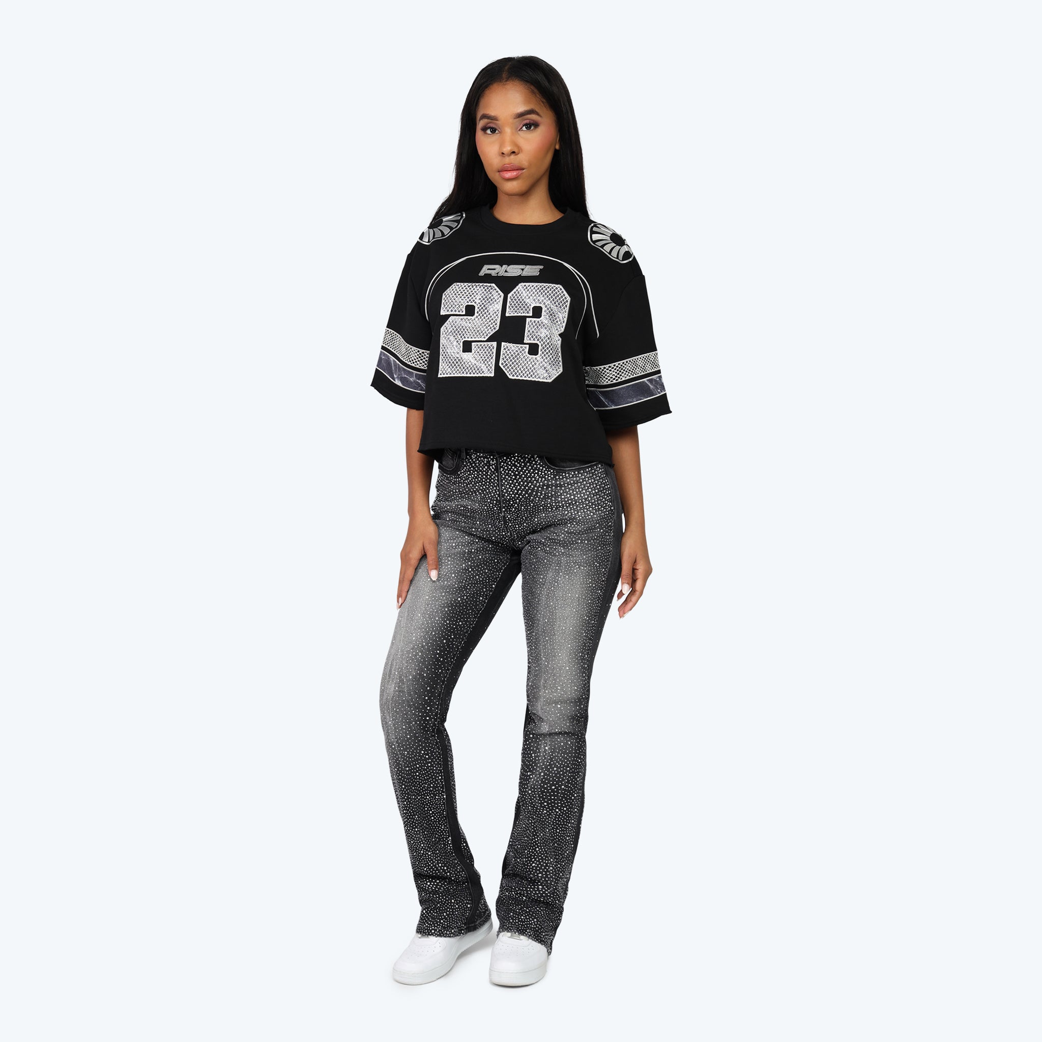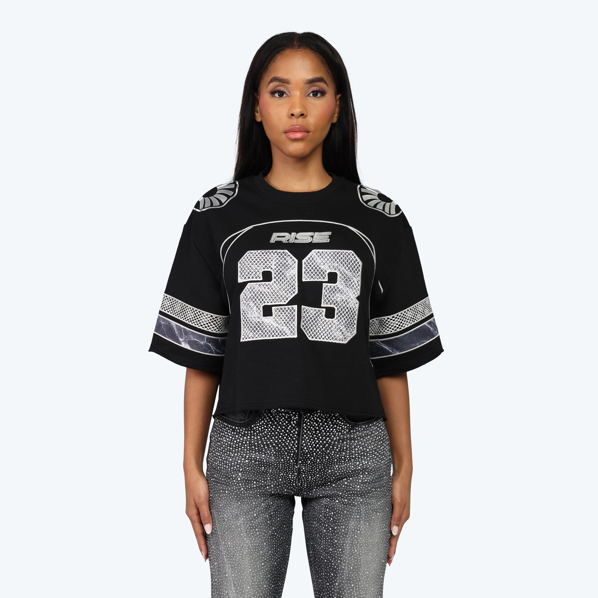 Oversized Boxy Rhinestone Tee - Black