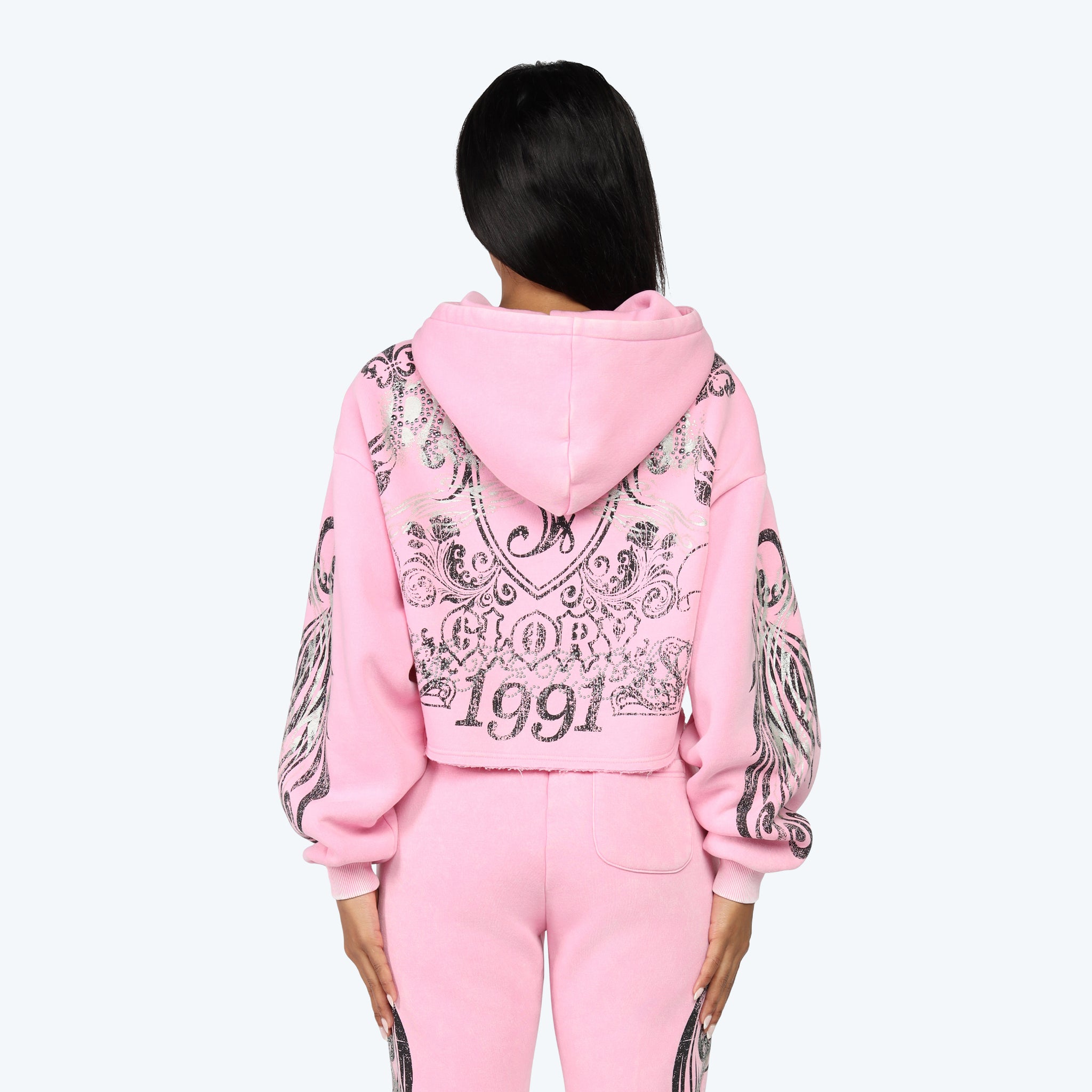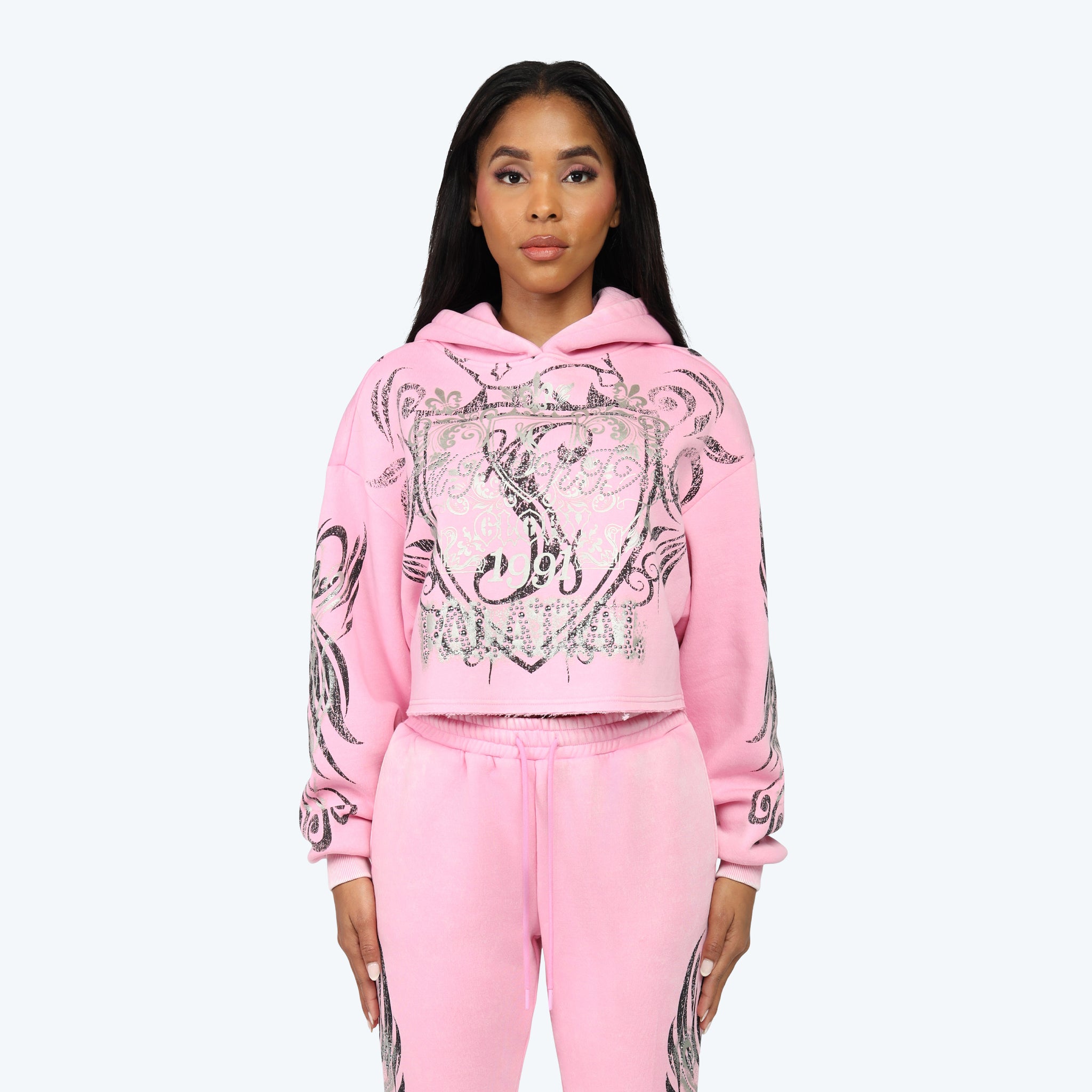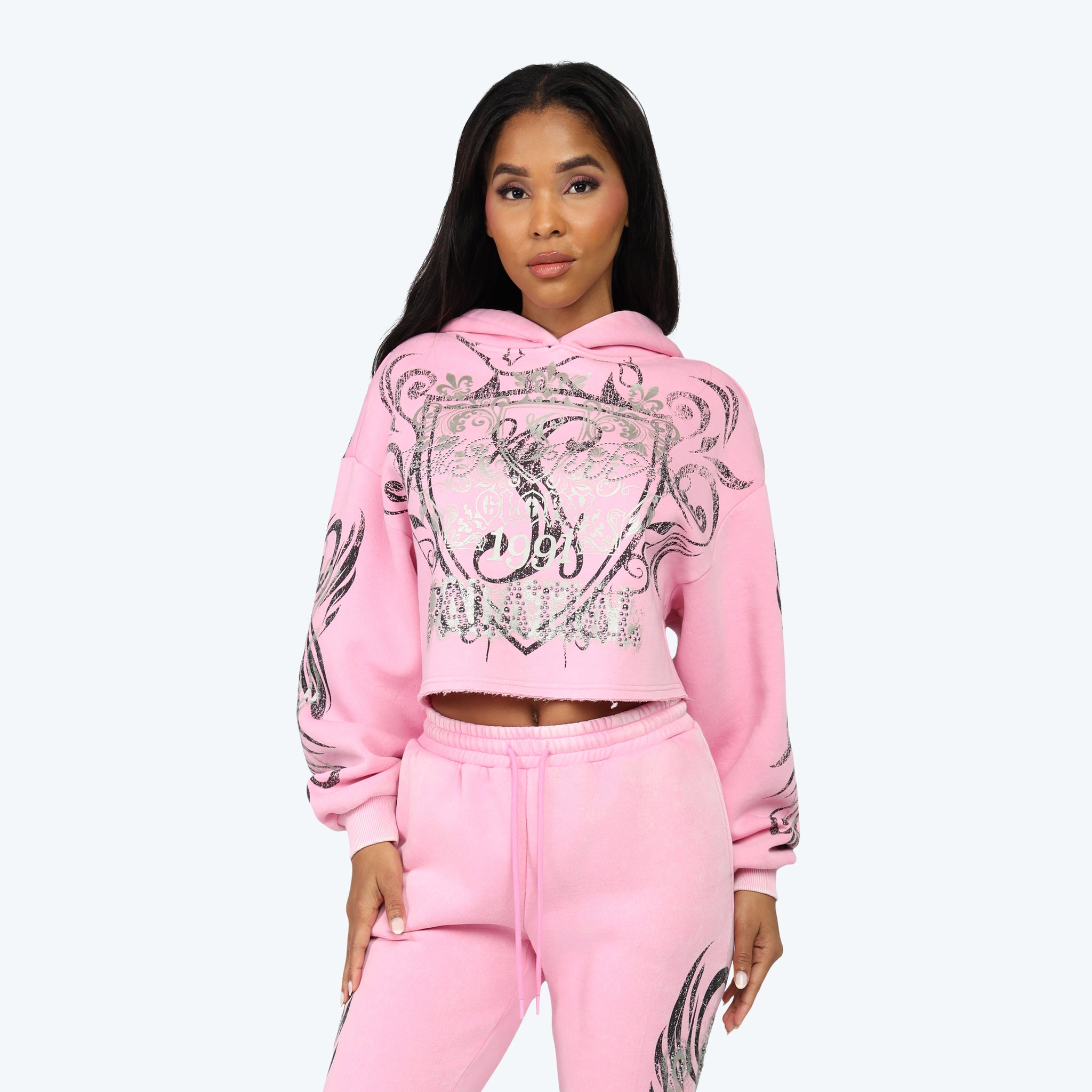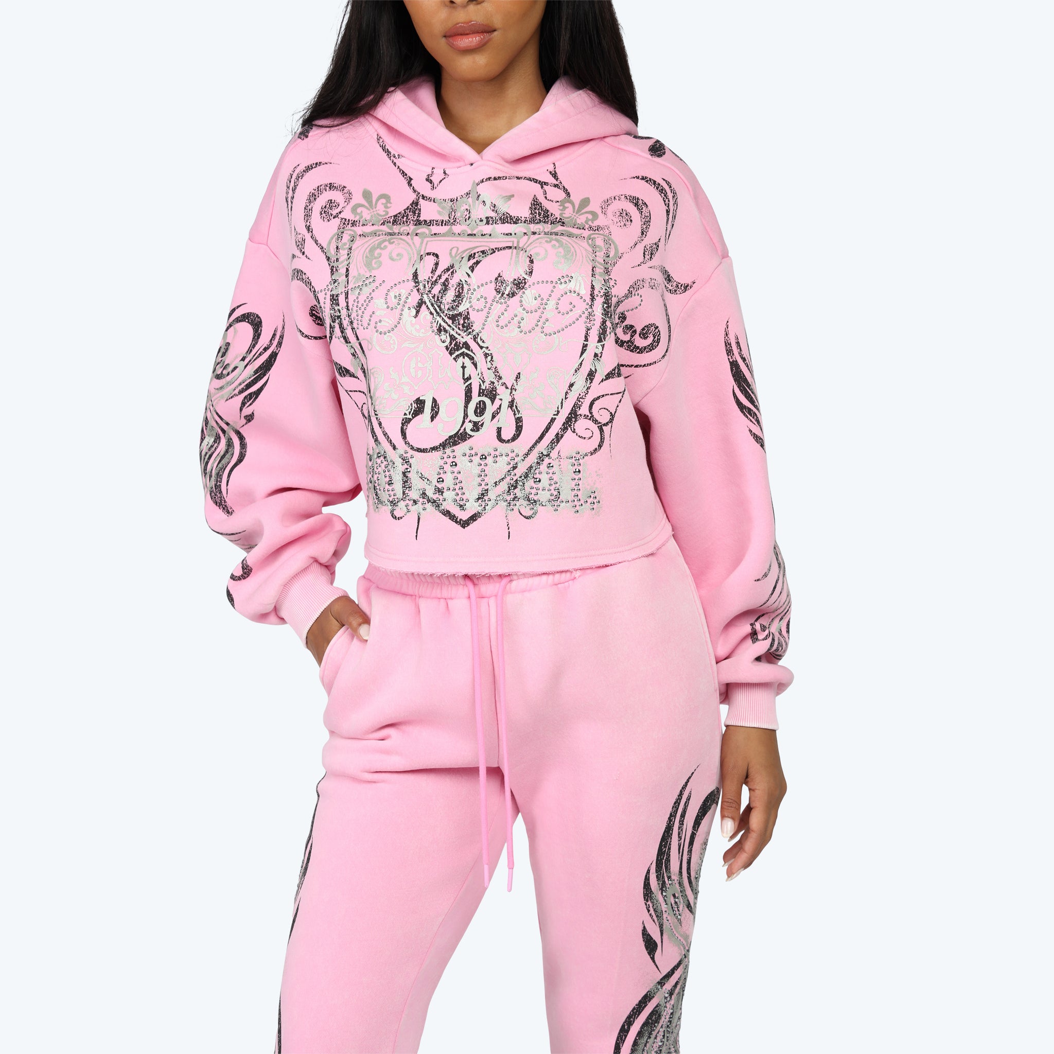 Oversized Cropped All Over Print Hoodie - Begonia Pink